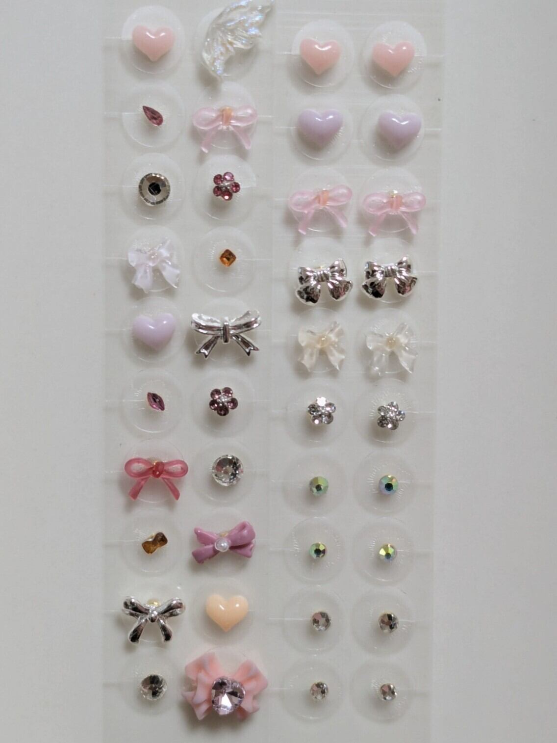 耳つぼジュエリー 耳つぼ リボンMix ピンク ゴールド粒 40粒 透明シール