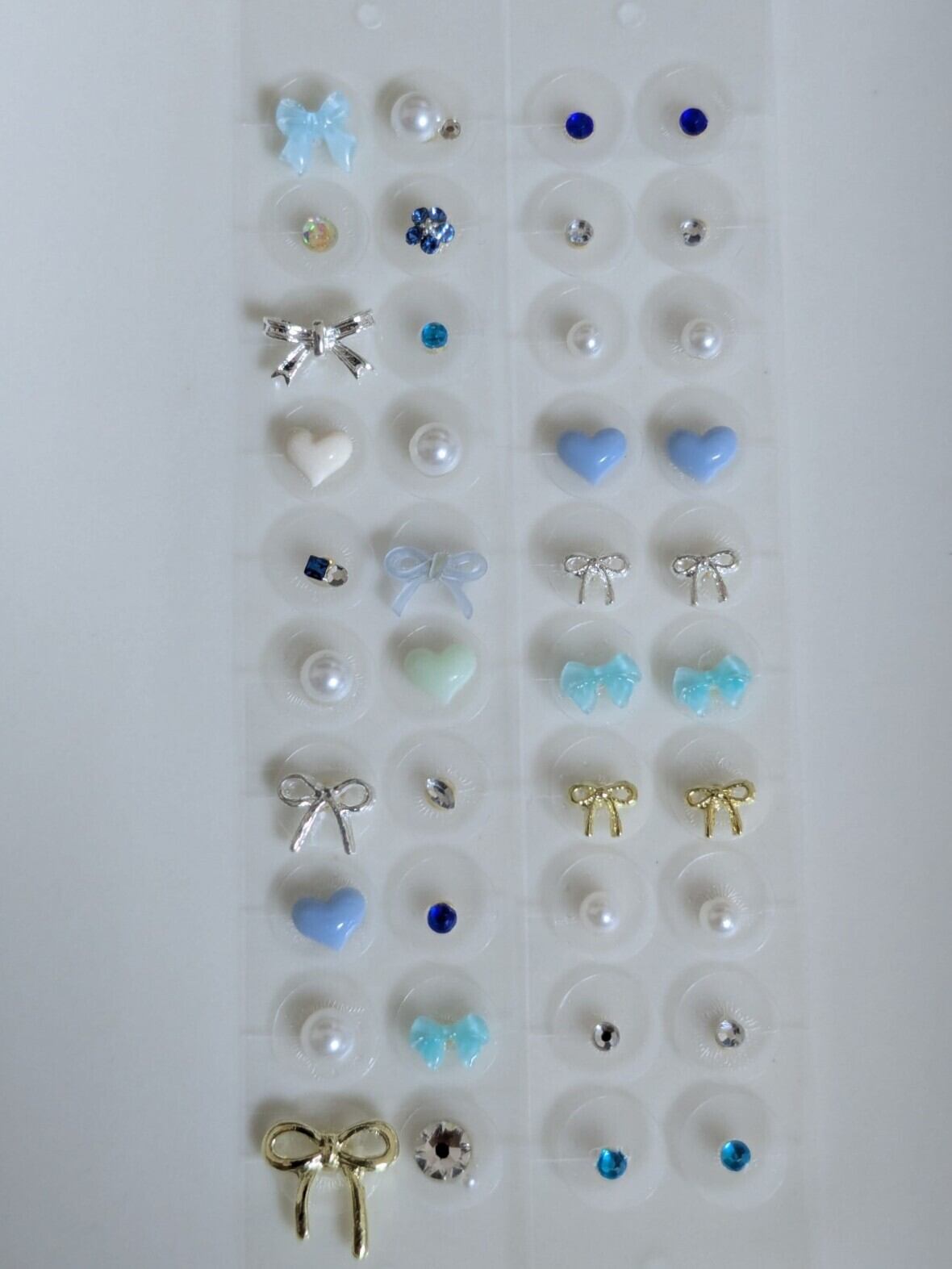 耳つぼジュエリー 耳つぼ リボン ブルー ゴールド粒 40粒 透明シール