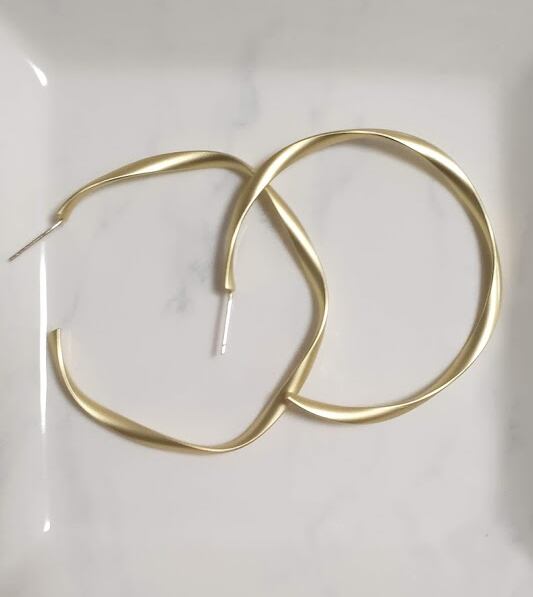ヴィンテージ風 ピアス ねじれピアス マットゴールド 5cm フープピアス