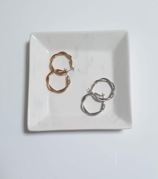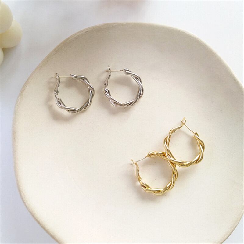 ねじれ フープピアス ゴールド シルバー 光沢 3cm