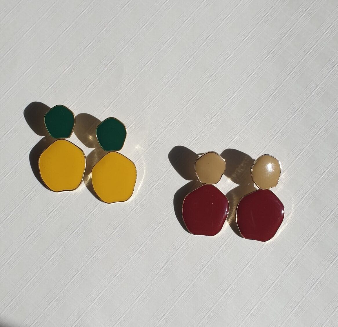 アースカラーが特徴なおおぶりレトロピアスになります。