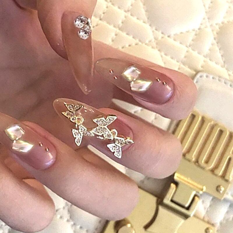 蝶々のパーツがワンポイントのネイルチップになります。
