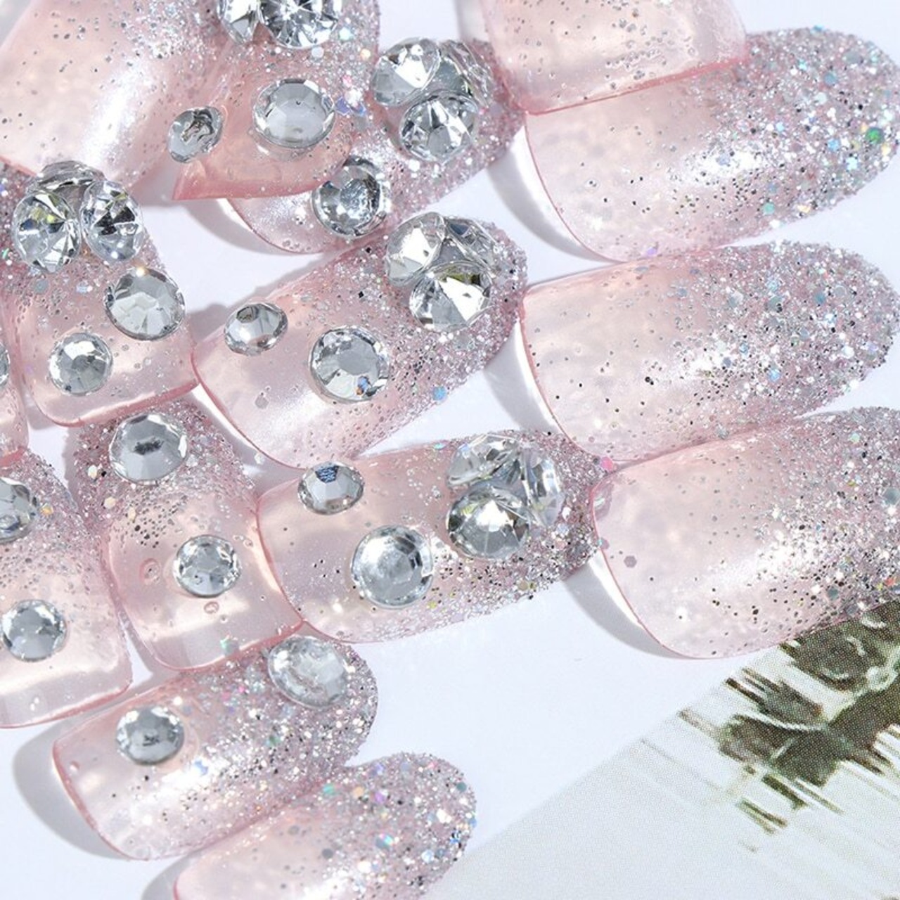 クリアでキラキララインストーンが特徴のネイルチップになります。