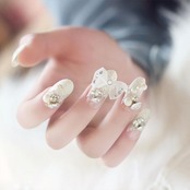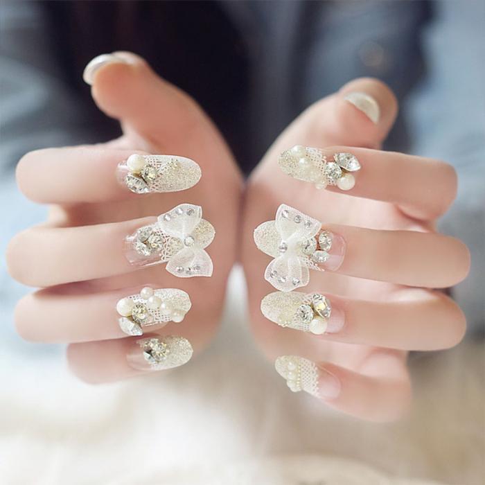 クリアベースにビジューとパールラメが散りばめられたネイルチップになります。