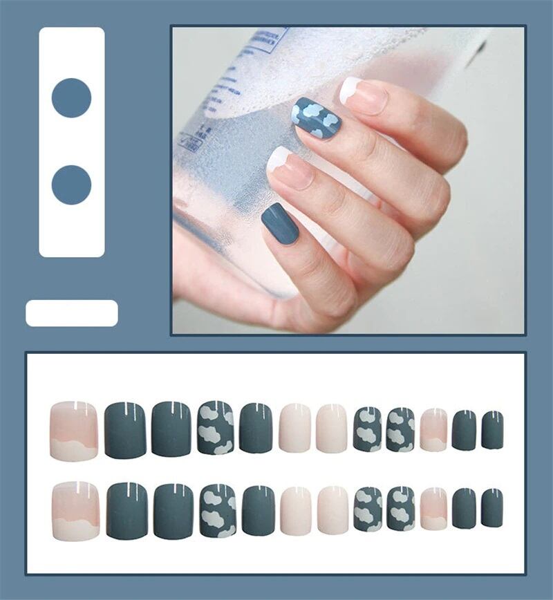ブルーに雲のデザインがかわいいネイルチップになります。