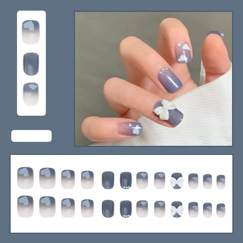 グレーが強めのブルーカラーが落ち着いた雰囲気のネイルチップになります。