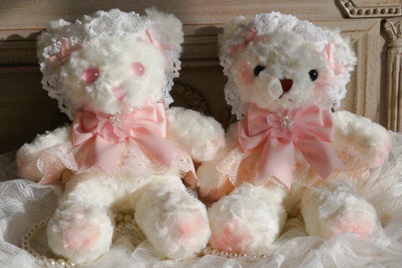 ピンクとブルーのリボンと羽がキュートなくまちゃんになります